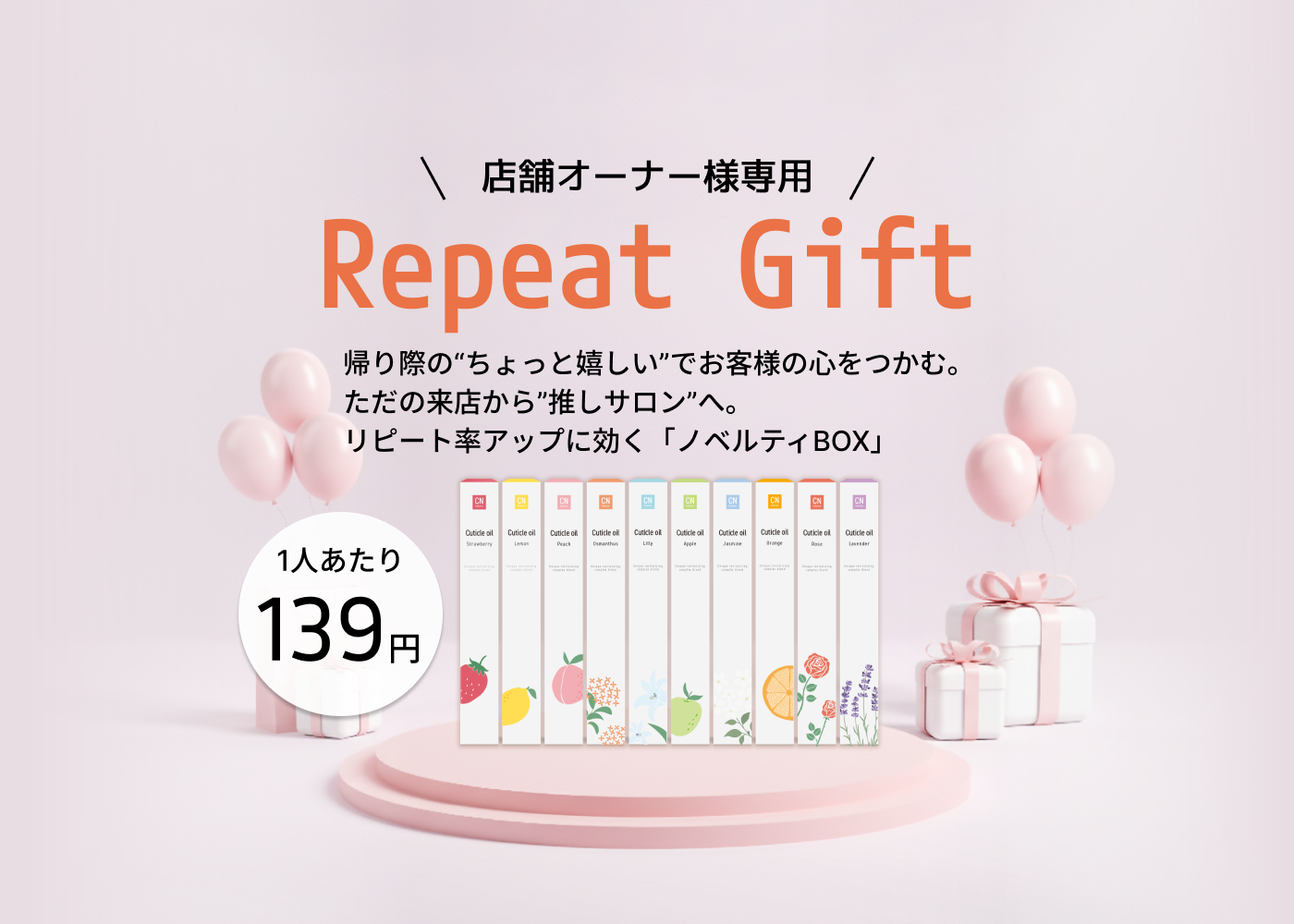 新規のお客様には、もれなく全員にプレゼントがお勧めです!まずは、ささやかなサプライズで印象に残るサロンを目指しましょう。